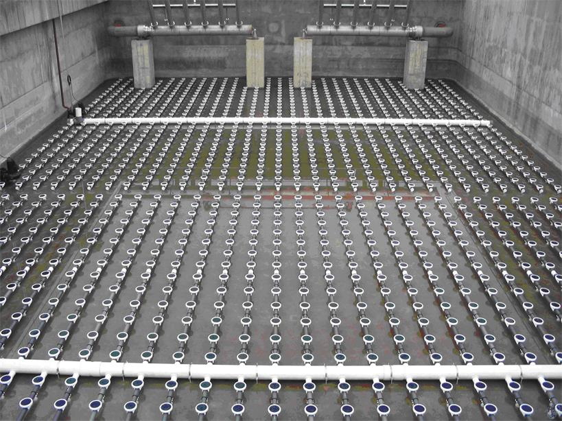 微孔曝氣器可用于活性污泥負(fù)荷率小于0.4kgBOD5/(kgMLSS·d)的系統(tǒng),在要求空氣擾動較小的接觸氧化等處理工